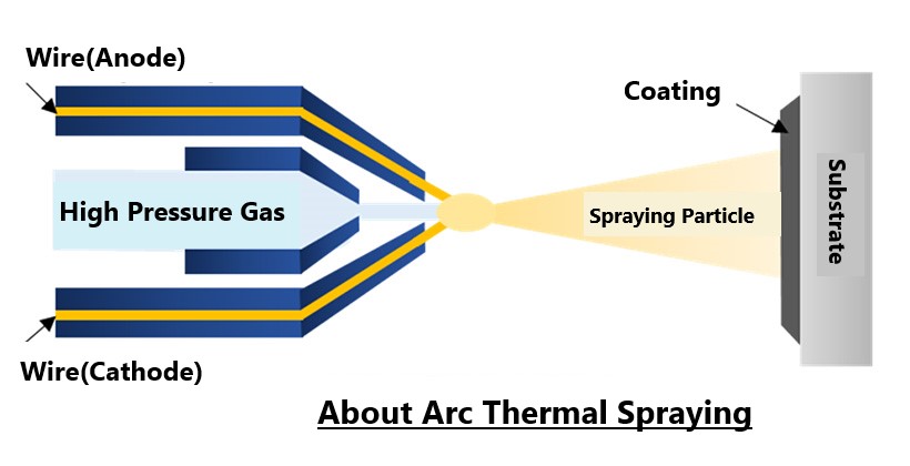 - The thermal arc spray is a process incorporation an electric arc as heat source for melting arc material. By an air stream the molten metallic particles were propelled onto the substrate to be coated.